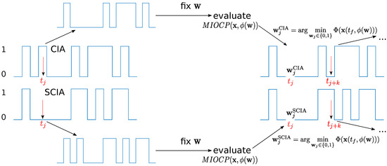 In the following, we define the MILP formulations of CIA type for in Algorithm 1. CIA, CIA, and SCIA refer to different scalings (Section 3.1), “1” and “max” to different norms (Section 3.2), and the presence of “B” to a reversal of time (Section 3.3).