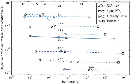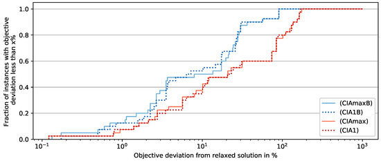 Let the problem where (14) replaces (7b) in (CIAmax) be denoted by (CIAmaxB). The other introduced MILPs can be modified analogously with backward time accumulation and are named accordingly; e.g., (SCIA1B) refers to (SCIA1) with backward accumulation.