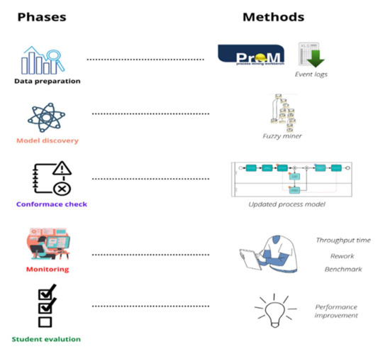 - Bogarín, A.; Cerezo, R.; Romero, C. Discovering learning processes using Inductive Miner: A case study with Learning Management Systems (LMSs). Psicothema 2018, 30, 322–329. [Google Scholar] [CrossRef]