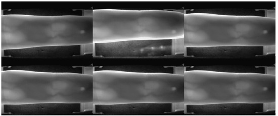 University of Twente Finger Vascular Pattern (UTFVP) dataset is the second dataset used for experimental evaluation. The dataset was collected from 60 individuals with 73% male, 87% right-handed, and 82% aged 19–30 at Twente University [17]. The finger vein images were captured with a local custom device. Each individual provides the index, middle, and ring finger of both hands, and each finger is sampled four times. In total, there are 1440 (60 individuals × 3 fingers × 2 hands × 4 samples) images in the dataset. Each of them is in a “png” format with 672 × 380 pixels in size. The samples of finger vein images from UTFVP can be seen in Figure 5.
