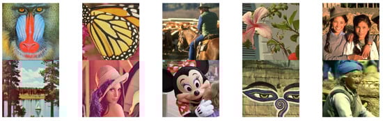 In this paper, 10 images as shown in Figure 2 below are selected as test images. The quantitative experimental results and visual restoration effects given in the subsection are obtained on these images. The names of the images are Bahoon, Butterfly, Cowboy, Flower, Girl, Lake, Lena, Mickey, Mural, and Nanna, respectively.