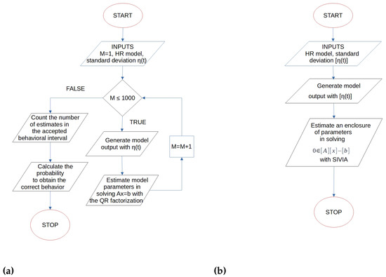 These two diagrams summarize the differences between the procedure presented in [5] and the one presented in this paper. (a) Diagram summarizing the stochastic procedure, presented in [5]. (b) Diagram summarizing the interval procedure, presented in this paper.