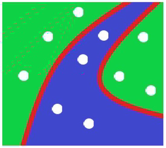 SVM creates a multidimensional plane, where each object (in our case, each subject) will be positioned according to the selected features’ value. First, the sample part used for training will determine a curve to split the plane, as shown in Figure 1, where each area corresponds to one class. Then, the validation sample part will verify the accuracy of the curve, and this process will be repeated until the SVM reaches the best angle given the features, training sample, and validation sample. After this, the test sample is used to measure the SVM generalization.