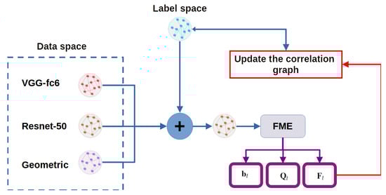 Other authors went further and attempted to merge information from both the feature space and the label space. In this case, dynamic unequal weights were assigned to each constructed graph from the feature space, while only one fixed weight was used for the information from the label space [].