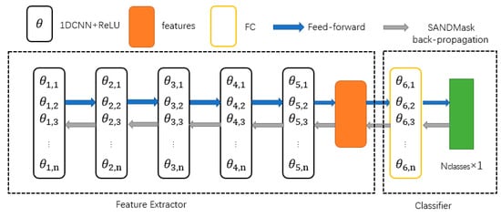 Different from other fault classification generalization models, we only used improved SAND-Mask domain generalization [] to update the network’s weight, and we did not establish the generalization model by using domain adversarial network and distance measure learning as in other research works.