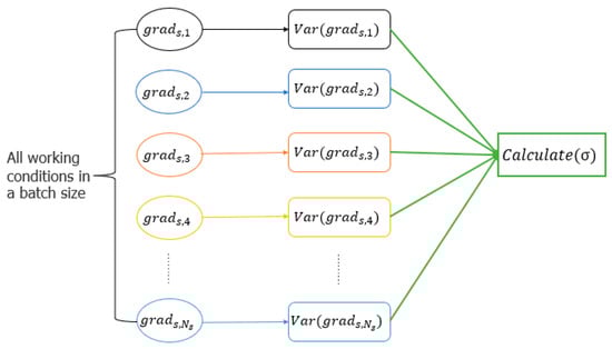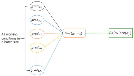 Faced with a large number of working conditions, each sample gradient in the batch needs to be solved separately when solving in Formula (2), which will increase training times. In order to reduce training time and improve training efficiency, we found a solution based on the characteristics of working condition data. According to the analysis of data in different working conditions, we found that there was relatively little difference in the distribution of data in different working conditions, and the variance between data in different working conditions might be almost the same. Based on this, we modified Formula (2).