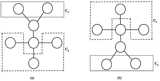 If is not at a star leaf of , we can say . Similarly, in case of , justifying the above mentioned claims. □