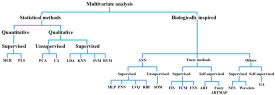 Multivariate data analysis methods organized as statistical or biologically inspired techniques.