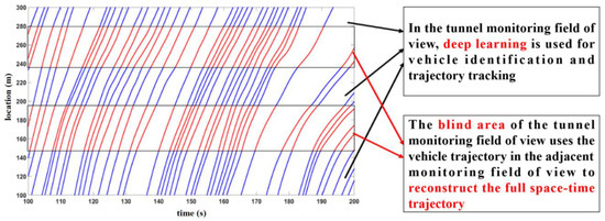 3.2. Reconstruction of Vehicle Track in Entire Space–Time of Tunnel