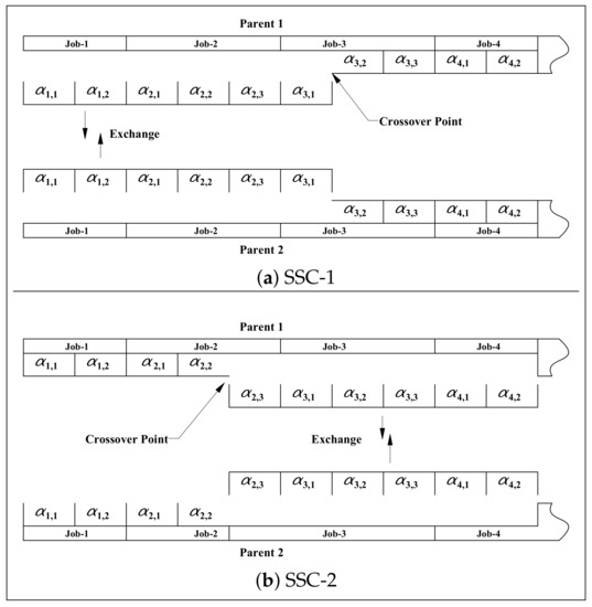 The first paper in lot streaming (i.e., [4]) was for a classical job shop scheduling problem. However, research in CJS-LS is minimal. Hereunder, we reviewed relatively recent articles in the area. Chan et al. [28] and Wong et al. [29] considered CJS-LS with due date criterion, where the authors assumed that all the sublots and the jobs from the same product (with a due date) will be assembled at the end of the line. Methodologies based on a generic algorithm were developed to minimize the total cost of earliness, lateness, and setup in [30,31].