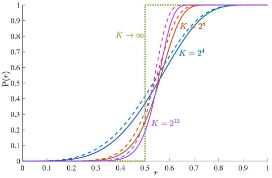 The limiting behavior of is, thus, decided by the scaling of with respect to K. The critical scaling is . Such a scaling implies a slope of in doubly logarithmic scale. Thus,