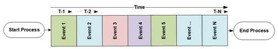 The term ‘trace’ refers to an execution path of events that are part of a unique process instance. The trace reflects the order in which the activities of this path are executed from the start of the process till the end. Thus, a trace shows activities where and z are related events. Event x is completed before starting an event y, and that event y is executed before event z. So an event log is an ordered execution of events that belongs to a case. Definitions of events, trace and event log are described by Van der Aalst in [] as: