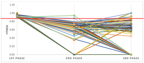 It is also presented in Figure 20 that 832 cases out of a total of 907 in the second phase are below the average fitness of successful cases, presented as a red line. The total number of cases that are identified as failed and yet had a lower fitness value than successful cases is 75. This shows that a decrease in the fitness score allows the prediction of an anomaly with an accuracy of 91.73%.