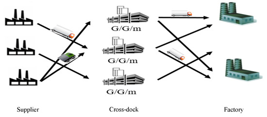 A growing tendency to optimize the distribution network in order to decrease logistics costs, which aims to ensure the optimum location of facilities, reduce inventory and transportation expenses, verifies the necessity for distribution and supply chain management. On the other hand, the efficient control of the physical flow of goods is the most significant factor in reducing costs in the supply chain. Accordingly, many companies try to develop their distribution strategies to achieve their material flow’s efficient management. The presence of a middle center seems necessary to link producers and customers within a supply chain system. Cross-docking is a method for distribution management and goods transportation leading to warehousing cost reduction via the direct transfer of cargo from input vehicles to output vehicles without storage. Hence, product storage and recycling costs are reduced by applying cross-dock systems and even by synchronizing input and output vehicle flows [1]. In a cross-dock system, the main target is to remove storage and reduce the over-transportation of goods. Therefore, the existing product in the warehouse is stored for a short time [2]. The Material Handling Industry of America defines a cross-dock as a warehouse focused on transferring goods from a vehicle to another vehicle [2]. A cross-dock acts more as an inventory coordinator than as filling a warehousing role, shifting the focus from supply chain management to demand–supply management [3]. Galbert et al. (2008) presented a model based on customers’ perspectives for the optimal use of cross-docking and concluded that lower demand variability and higher stock costs exacerbate the effects of cross-docking. On the other hand, supply chain management can be divided into three categories of supply chain designing, planning, and control [4].