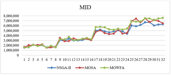 Figure 7 illustrates the proposed algorithm performance for the MID criterion. Approximately, in all of the sample problems, NSGA-II performs better and reaches high-quality solutions.