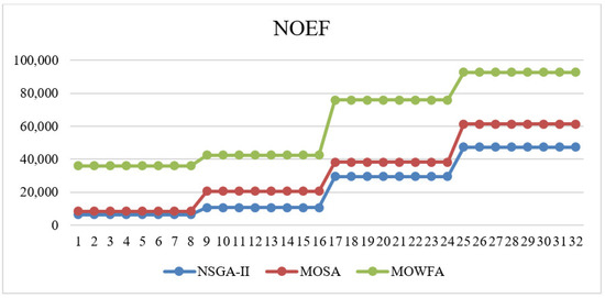 The NOEF criterion or number of evaluating functions represents the speed of the algorithm running. The only difference is that this criterion is more practical and obvious than the computational time criterion and its size is not related to the computer system.