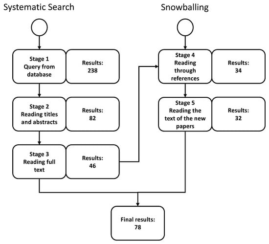 Our search process included a two-step method involving a systematic search and snowballing. We used these two steps to ensure the wide coverage of the papers. The systematic search was conducted first to retrieve the core set of papers. From the retrieved papers, we searched their references to check if there were more related papers that were not retrieved originally. This process is called snowballing, where we expand the collected papers based on the references of the core papers.
