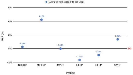 The gaps between the different solutions for the analyzed works are presented in Figure 8, where the y-axis represents the gap between OBS and BKS. According to the results, BR-DEH algorithms provide good performance, improving on average in about % the BKS and varying from about % for the MS-FSP up to % for the HFSP. Concerning the MS-FSP, which presents the highest gap, authors compare the obtained results using the classical single-sever flow-shop problem without loops. Moreover, they argue that BKS was obtained using a complete metaheuristic that uses analytical expressions to compute the solution, together with local search operators and data structures that allow for more efficient solution space exploration. Unfortunately, these metaheuristics cannot be employed in general scenarios with multi-server machines and loops due to their time dependencies. Thus, a BR-DEH algorithm is necessary to solve these problems efficiently.