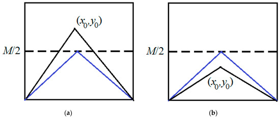 The geometric transformation of the road image is performed to obtain the true value of the road width at . This transformation is demonstrated in Figure 10.