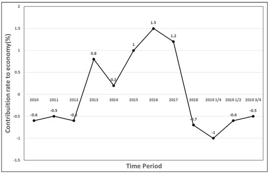 The construction industry plays a significant role in economic growth []. Korea has also developed its economy along with the growth of the construction industry []. However, as presented in Figure 1, based on the 2020 Construction Policy Review by the Construction Policy Institute of Korea, the Korean construction industry has not contributed to economic growth since 2017. Moreover, the construction industry has hindered economic growth since 2018 due to problems such as workforce shortage and reduction in investment. According to the Ministry of Employment and Labor, the safety problem and low wage levels are the main reasons companies cannot employ new employees on construction sites. As for the safety problem, about 50 percent of occupational accidents that lead to death takes place in the construction industry. Regarding the wage level, employees in the construction industry are paid 26.1 percent lower than employees in the manufacturing industry. Even compared to the average rate of all industries, it is 15 percent lower []. For those reasons, workforce shortage happens in the construction industry in Korea. According to [], the number of lacking employees on construction sites will increase to 96 thousand in 2024 from 83 thousand in 2020.