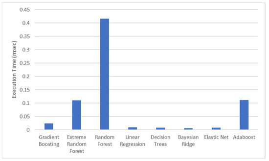All algorithms are quite efficient, in their test phase. The complexities of the algorithms are shown in Table 3 [16,17]. Note that complexities depend on many factors, such as number of features, samples, number of trees, depth of the trees (e.g., for Random Forest), etc. Note also that Bayesian Ridge regressor and Elastic Net regressor are Linear regressors as well.
