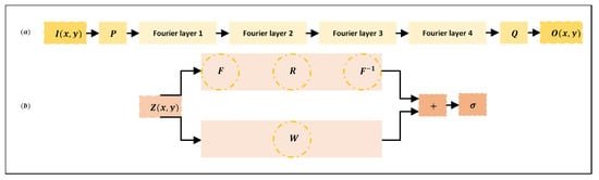 (a) Architecture of the neural operator and (b) Architecture of a Fourier layer.