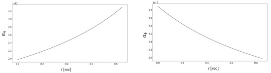 The disadvantage of the Laguerre algorithm is that small changes in the coefficients of the characteristic polynomial may lead to large variations about the correct values of the roots. Figure 2 shows how these coefficients change as the eigenvalue problem for the pylon with the attached mass is solved every time step , by retaining eigenvalues. This leads to a system of equations, which is the minimum size for reliable root recovery. More specifically, the left column in Figure 2 is for the decreasing mass rate and the right column is for the increasing mass rate.