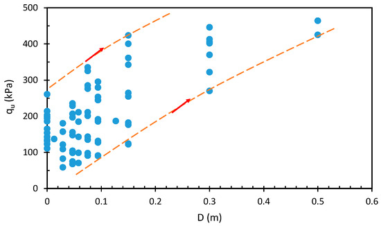 Regarding the determination of ultimate load, for large-scale footings, it is defined as the load corresponding to the point where the slope of the load settlement curve is at its minimum. For smaller-sized model footings, it is defined as the load corresponding to the point of break of the load settlement curve in a log–log plot. Figure 1 shows the distribution of the database.