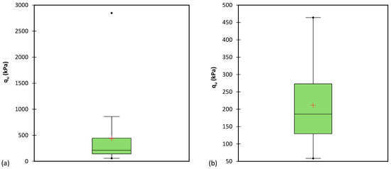 Distribution of collected datasets and effect of (a) dimension of foundation and (b) soil properties on qu.