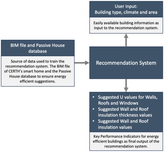 One of the main sources of data in this paper is the BIM data of the nearly zero Energy Building (nZEB) Smart Home of the Center for Research and Technology Hellas (CERTH) [36] located in Thessaloniki, Greece. However, since ML algorithms will be used to develop the RS, more data need to be collected for training the algorithm. For this purpose, the Passive House database [37] was used to obtain thermal envelope data. The database has an official website and has a search function that lets you search buildings according to their location. Upon expanding on the building information, the variables used for training the dataset in this study can be easily accessed. This database is selected for two reasons. First, it contains all the necessary information related to the characteristics and properties of the thermal envelope of buildings. Secondly, the Passive House database establishes a standard for ensuring high energy efficiency in buildings by improving the thermal envelope, which consequently reduces the energy requirements for heating and cooling. Therefore, it would be beneficial to train the algorithm utilizing data from this source.