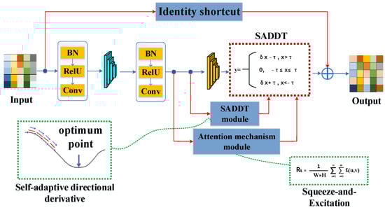 Based on RSBU, this paper proposes combining the attention mechanism module and self-adaptive directional derivative threshold module (SADDT) to obtain an adaptive residual shrinkage network (SARSN).