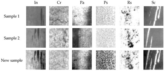 To evaluate the image enhancement effect of Cycle GAN data and verify the feasibility of cross-production line sample migration, a total of 1200 original images of various categories were acquired, and new defective samples were generated by image cross-domain conversion. The migration results of some defective samples are shown in Table 2