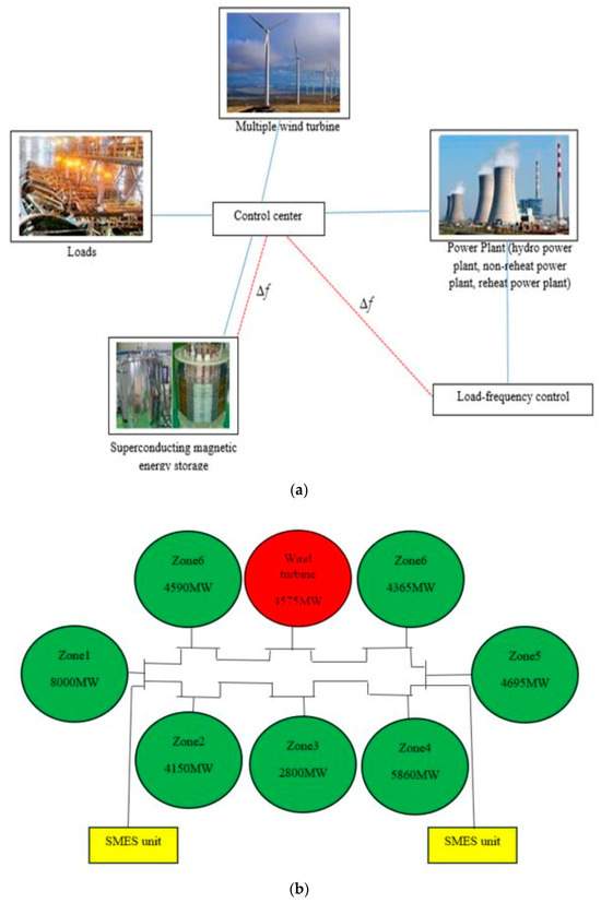 Superconducting magnetic energy storage (SMES) systems store electric energy in their magnetic field and release it as needed, making them a significant contributor to improving frequency stability alongside the LFC system in power systems [35], due to their extended lifespan and high storage capacity. In [36], coordinated control of the LFC system and SMES is discussed using an H2/H∞ robust controller. However, designing such a robust controller necessitates an accurate model of the power system, and since some components may be ignored in the model, the controller’s optimal performance may be compromised in real-world systems. Another approach to coordinated control is presented in [37], where a neuro-fuzzy controller is employed. Although the neuro-fuzzy controller demonstrates good results in addressing uncertainties related to the power system parameters, it is not robust against disturbances caused by the power system load.
