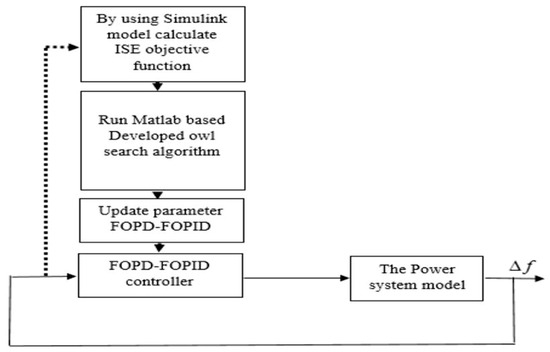The image depicted in Figure 5 illustrates the utilization of the DOSA to optimize the parameters of the FOPD–FOPID controller. This optimization process is specifically aimed at achieving coordinated control of the LFC system and SMES.