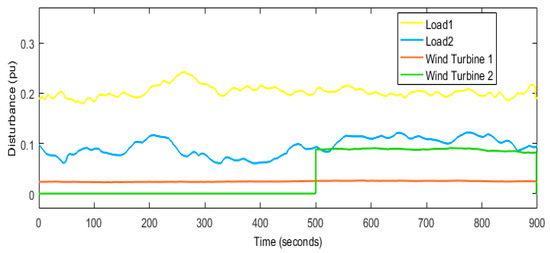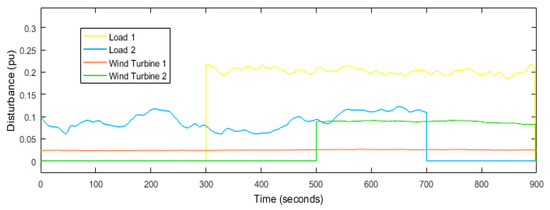 Load disruptions applied to the power system.