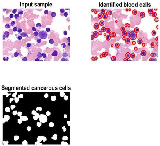 The evaluation of leukemia is determined by expert pathologists who have sufficient skills [1]. Leukemia types are determined by Molecular Cytogenetics, Long-Distance Inverse Polymerase Chain Reaction (LDI-PCR), and Array-based Comparative Genomic Hybridization (ACGH) [1]. These procedures require substantial effort and skills [1]. Pathologists and physicians use smear blood and bone marrow tests to identify leukemia [1,2,3]. However, these tests are expensive and time-consuming. In addition, interventional radiology is another procedure used to identify leukemia [1]. Yet, the radiological procedures are limited by hereditary issues that are affected by the sensitivity and resolution of the imaging modality [1].