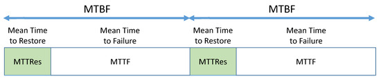 Graphic display of the relationship between parameters MTBF, MTTRes, and MTTF.