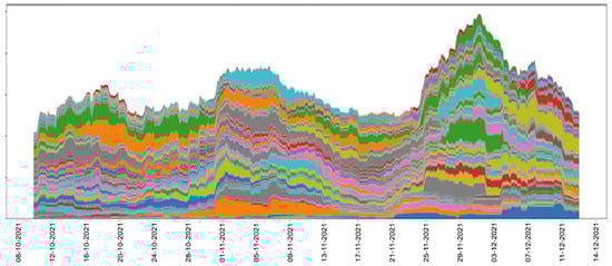 - Byron, L.; Wattenberg, M. Stacked graphs–geometry & aesthetics. IEEE Trans. Vis. Comput. Graph. 2008, 14, 1245–1252. [Google Scholar]