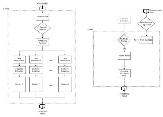 The AI Unit is shown in Figure 3, the framework’s “brain”. As a standard ML approach, the parts that compose the process flow are represented in Figure 4: