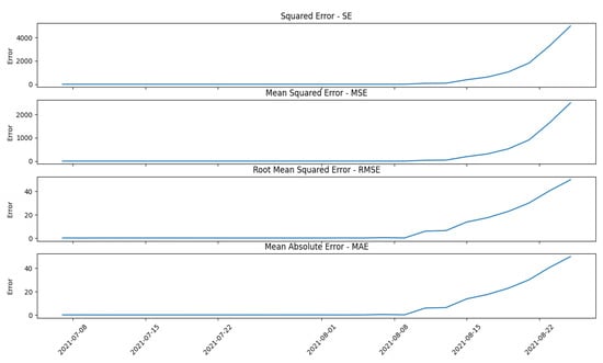 Furthermore, different errors were also evaluated during the study: Squared Error (SE), Mean Squared Error (MSE), Root Mean Squared Error (RMSE), and Mean Absolute Error (MAE), with the shape reported below: