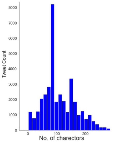 Furthermore, the Twitter website followed by android and iPhone is a major communication medium for posting RUW-related tweets. However, there is a presence of social bot tweets as well that needs to be observed for any misconduct on Twitter such as spreading fake news, abusive content, or provocative posts. To analyze the societal engagement of RUW-related posts, we have observed that approximately on average each tweet received 2 likes with a maximum of 16,987 likes and 5764 retweets. The data have user tweets that have a maximum of 14,515,730 followers and a user account that is following a maximum of 1,434,649 other users. This indicates the tweet’s reach among Twitter audiences. Figure 2 shows the most liked and retweeted posts in the collected data, where the tweet content highlights the spread of misinformation related to military personnel. This finding ties in with the Table 1 hashtag analysis (see #fake). Figure 3 indicates the tweet lengths that show a maximum of tweets are under the 100 letters limit and as a maximum a few tweets have been posted with the full 280 letters limit of Twitter. However, we have removed the URLs and stop words that may have shrilled the tweet length.