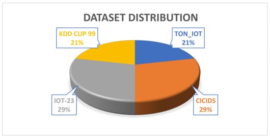 The IoT ecosystem enriches the EVCS charging station with data. The IoT converts the dummy EVCS stations into an intelligent system that can facilitate the usage and control of these EVCS. This is achieved by enriching the EVCS with data through the IoT. This allows software developers to offer remote monitoring and user accounting to end users. The users can remotely schedule EV charging based on night-time electricity costs. However, this comes with extra challenges. The EVCS equipped with IoT technology became a target for the attackers. There are different techniques in the IT world to detect malicious traffic, such as the Intrusion detection system. However, sophisticated attackers’ techniques for staying undetected by IDS, while sending malicious messages through the IoT system, make it difficult to distinguish between malicious and legitimate traffic. IoT network security trumps IT network security. The continual connection needed to serve clients and the large amount of data sent between nodes are the main causes []. There are continuous efforts to enhance the effectiveness and accuracy of Intrusion Detection Systems (IDSs), which monitor network traffic to identify potentially harmful data exchanges in IT and IoT environments. To accurately assess IDS systems, it is necessary to use appropriate data []. Machine Learning (ML) and Deep Learning (DL) algorithms speed up the development of IDSs that can identify cyberattacks more quickly and accurately [] making intrusion detection a prominent issue in academics. Costs associated with data breaches in the energy industry have skyrocketed, according to recent research [].