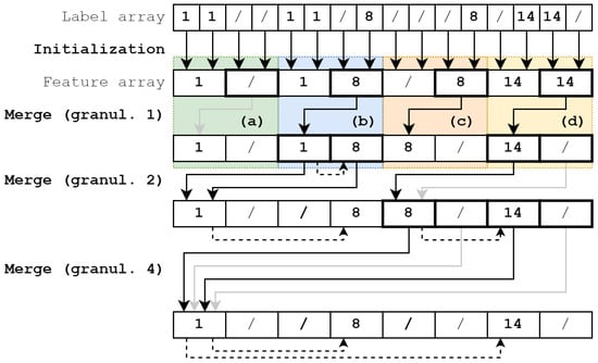 - Playne, D.P.; Hawick, K. A New Algorithm for Parallel Connected-Component Labelling on GPUs. IEEE Trans. Parallel Distrib. Syst. 2018, 29, 1217–1230. [Google Scholar] [CrossRef]