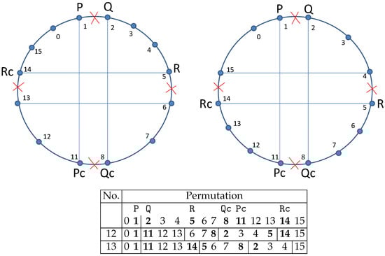 With respect to the initial cyclic order of P, Pc, Q, Qc, R, and Rc, there are 12 variants. Each order allows a specific number of different permutations (see Table 5).