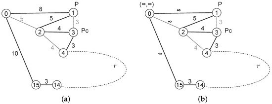Possible 5-opt operations based on a 16-points example if the circular order is PQ→Qc→R→Rc→Pc: (a) all 16 points exist; (b) points 9 and 10 do not exist.