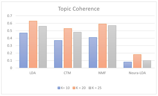 - Röder, M.; Both, A.; Hinneburg, A. Exploring the space of topic coherence measures. In Proceedings of the Eighth ACM International Conference on Web Search and Data Mining, Shanghai, China, 2–6 February 2015; pp. 399–408. [Google Scholar]