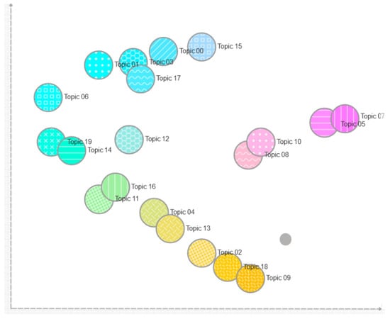 Inter-topic distances in a two-dimensional space by the multidimensional scaling (MDS) method.
