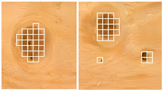 Several studies have used specialized techniques for detecting surface defects. In color-based feature, for instance, literature [] proposed a technique involving the use of a percentage of the feature of color histogram and a vector texture feature to classify image blocks to detect surface defects on wood; this method has been proven effective by experiments, especially with defects involving junctions. In Figure 2, the method results are shown.