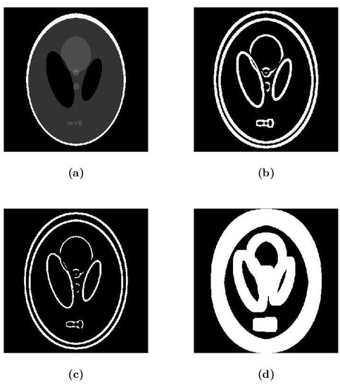 Figure 5a shows the original Shepp–Logan phantom (i.e., without ringing).