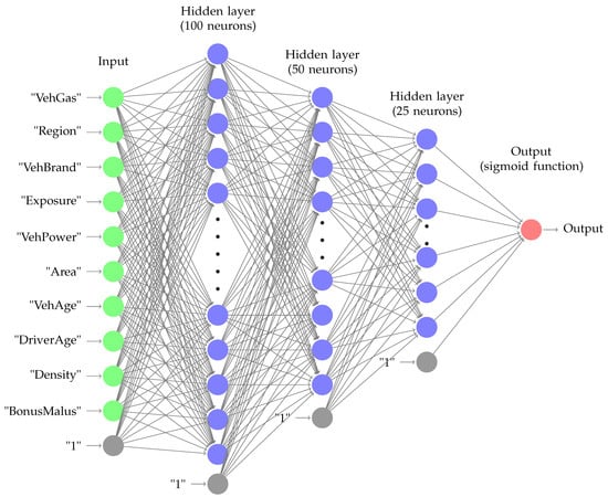 Therefore, it can be clearly understood why machine learning (ML) approaches are increasingly being considered in actuarial literature research, as can be seen in [1,2,3,4]. The ML methods which have been used so far for efficiently addressing alternative regression and classification problems in insurance include, for example, XGBoost, random forest (RF), decision trees (DTs), naïve Bayes, K-nearest neighbor (K-NN) model, AdaBoost (AB) model, stochastic gradient boosting (SGB) model, support vector machine (SVM) model and NNs. Additionally, a very interesting and novel research direction, which follows in this study, is the combined actuarial neural network (CANN) approach of [5,6]. Under this approach, every classical actuarial model can be embedded in an NN. In particular, the CANN approach can be interpreted as an NN boosting of the classical actuarial regression model. Therefore, the CANN models can be used to address all kinds of regression and classification tasks with the latter being the main research focus of this study. For more details regarding the use of ML methods in insurance, as can be seen, for instance, in Refs. [7,8,9,10,11,12,13,14,15,16,17,18,19,20,21,22,23,24,25,26,27,28,29,30,31,32,33,34,35,36,37].